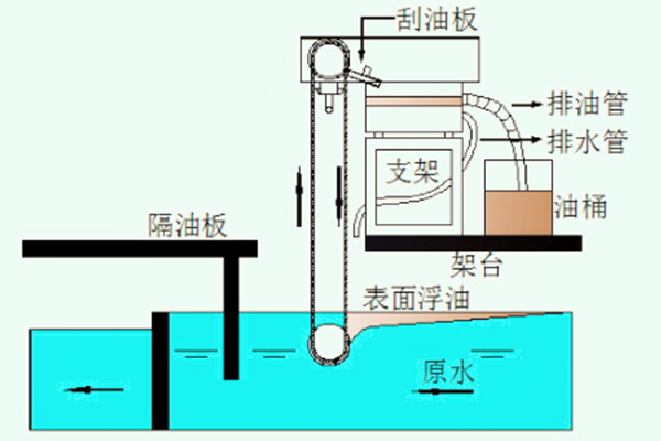 油分離回收過程:一體化油水分離回收裝置是利用油水之間不同的重力和表面張力這些物理特性,使刮油帶在穿過水面時(shí)吸取浮油、重油等有機(jī)液體。當(dāng)攜油帶繞過重輪向上離開液面時(shí),液面上的油吸附在濾帶的表面進(jìn)入二次分離池,經(jīng)二次分離后進(jìn)入收集器。一體化油水分離回收裝置采用進(jìn)口的立毛纖維濾帶。立毛纖維濾帶是在粗目的NYLON織布上涂敷特殊粘合劑后,利用靜電植毛技術(shù)于其上種植長度不等且具方向性的NYLON纖維而成。